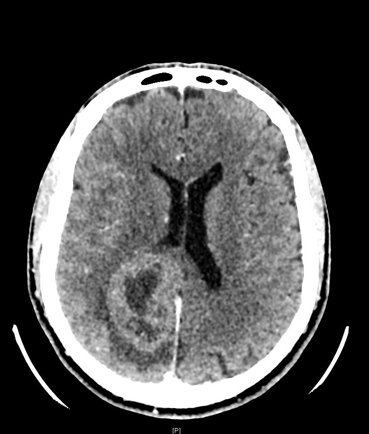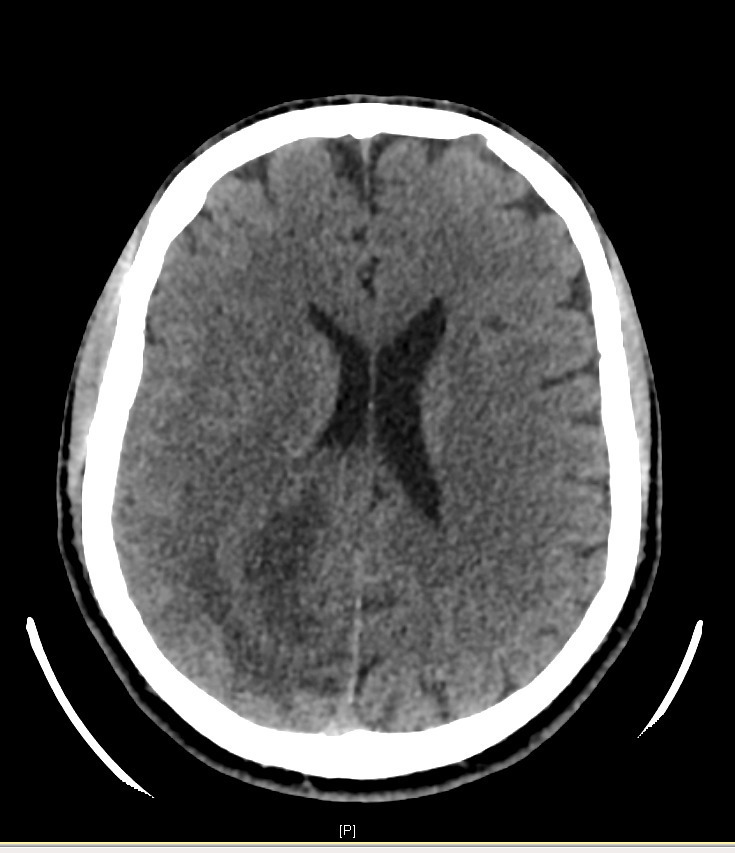 Son épouse ne rapporte pas d’antécédent particulier, il ne présente pas de troubles cognitifs. Elle signale tout de même que cela fait plusieurs fois qu’elle touche le bras gauche de son mari sans qu’il ne s’en aperçoive. De plus, il a récemment endommagé le rétroviseur côté conducteur de leur véhicule lors d’une manœuvre de stationnement. Il ne prend pas de traitement. Il ne fume pas et ne boit qu’occasionnellement. Il est sportif, en bon état général par ailleurs. Il se plaint parfois de céphalées avec sensation d’étaux, prédominantes à droite, qui résistaient aux antalgiques simples (paracétamol) depuis plus de 3 semaines.