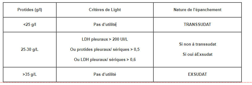 Critères de ponction pleurale