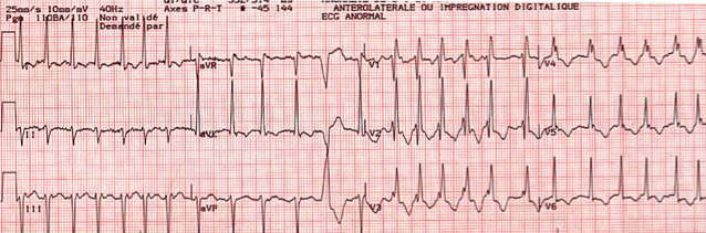 – tachycardie régulière mal tolérée à QRS larges –> tachycardie ventriculaire jusqu’à preuve du contraire ;