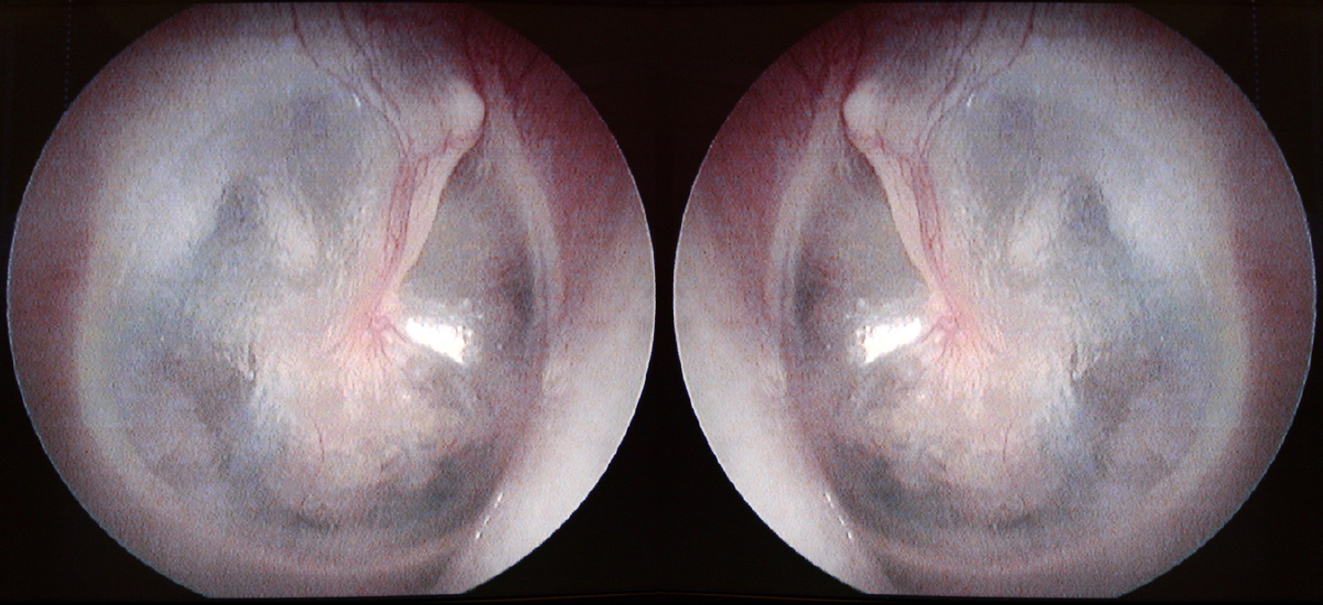 Les cordes vocales sont visibles, symétriques et d’aspect nacré – examen macroscopique normal