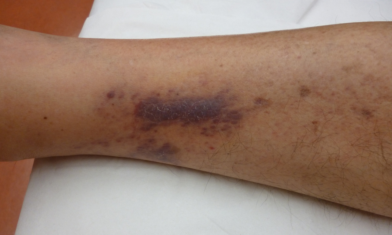 Quel est votre diagnostic ? Hématome Scorbut Purpura rhumatoïde Maladie de Kaposi Angiomatose bacillaire OK Il s'agit de la maladie de Kaposi. Valider mes réponses