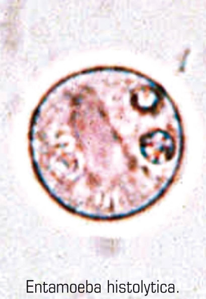 Il s’agit d’un abcès amibien du foie. L’amœbose hépatique provoque une hépatomégalie fébrile, les troubles digestifs pouvant être minimes. La forme pulmonaire se manifeste par une pneumopathie. Dans ces cas, le diagnostic est établi par la sérologie. Les dérivés imidazolés sont très efficaces.