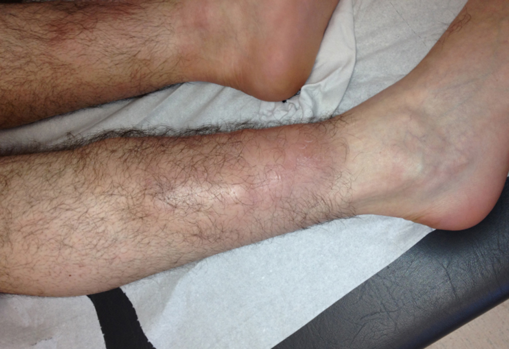 Il s'agit d'un myxœdème prétibial (dermatopathie basedowienne).