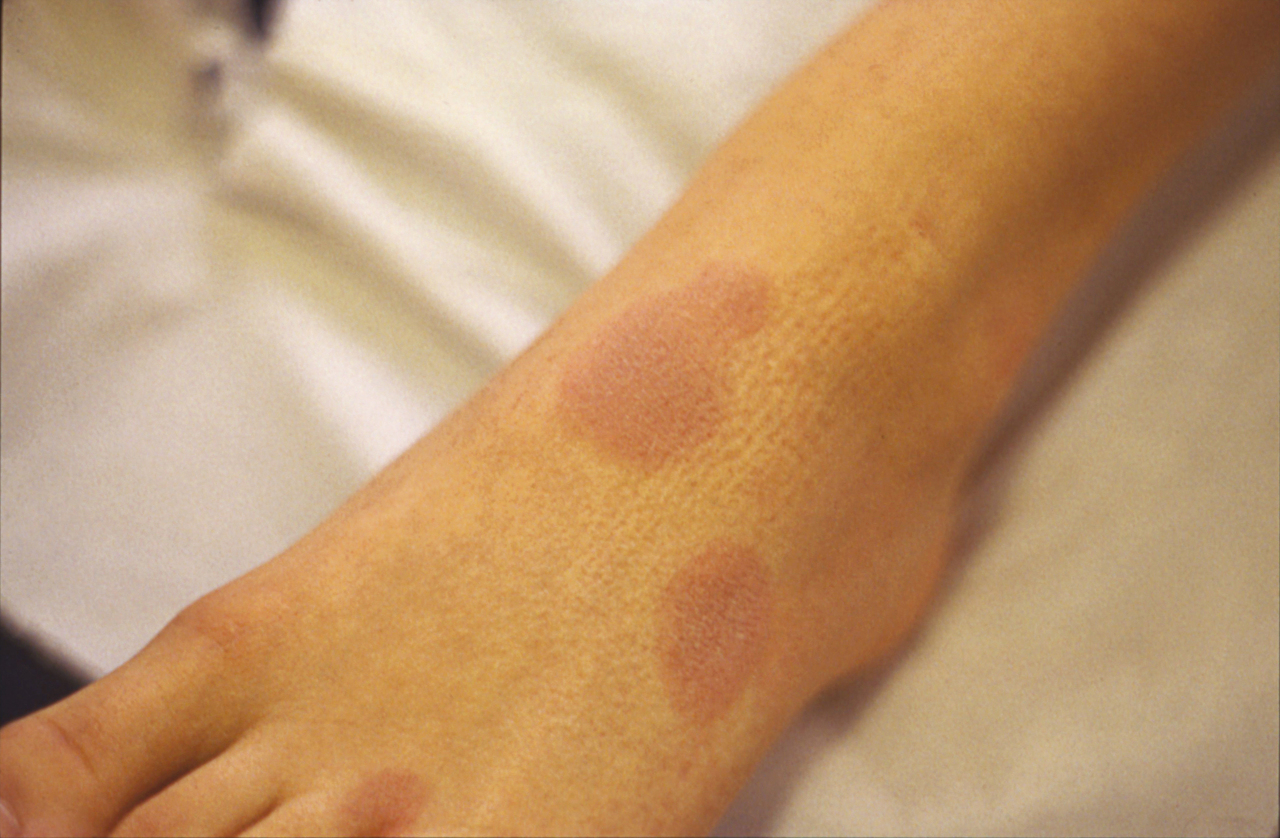 Quel est votre diagnostic ? Sarcoïdose Érythème noueux Érythème pigmenté fixe Il s'agit d'un érythème pigmenté fixe. Érythème chronique migrant Syndrome de Sweet OK Valider mes réponses