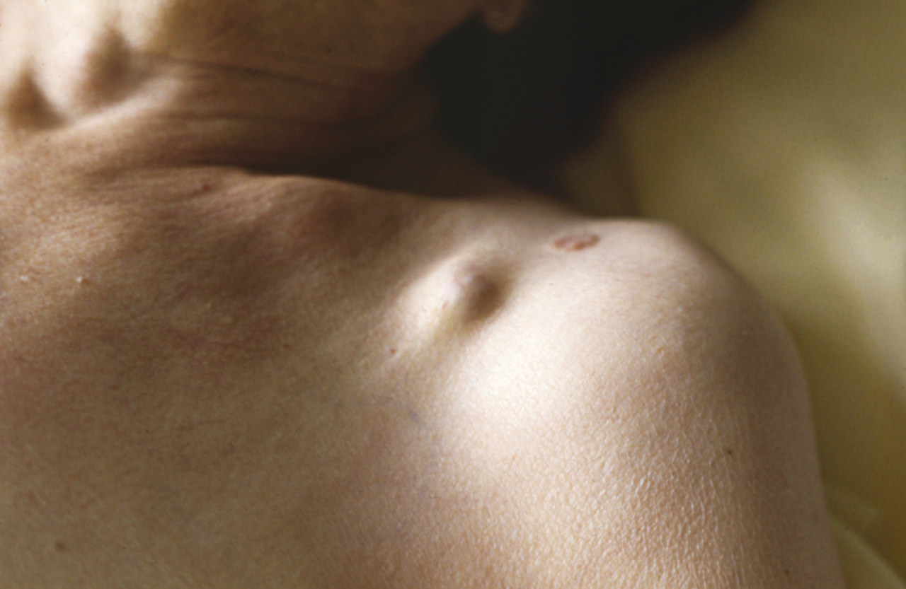 Quel est votre diagnostic ? Métastases cutanées Il s'agit de métastases cutanées. Adénopathies Sarcoïdose Tuberculose cutanée Lipome OK Valider mes réponses