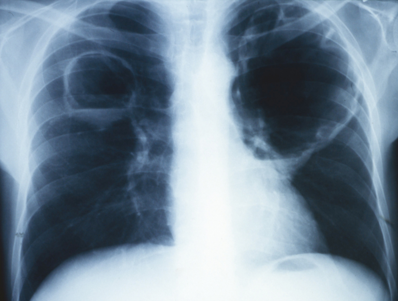Il s'agit d'abcès du poumon. Les abcès du poumon, uniques, ou multiples comme ici, produisent des opacités excavées à parois épaisses, localisées dans 70 % des cas dans les zones postérieures. Les agents infectieux en cause sont le plus souvent les bacilles à Gram négatif et les streptocoques d'origine bucco-dentaire chez l'adulte, et le staphylocoque chez l'enfant. Le germe en cause ici est le staphylocoque. Les pneumopathies à Staphylococcus aureus sont rares et correspondent à moins de 5 % des pneumopathies communautaires. Elles surviennent souvent dans un contexte post-grippal en raison de l'atteinte de l'épithélium respiratoire qui favorise l'infection par S. aureus.