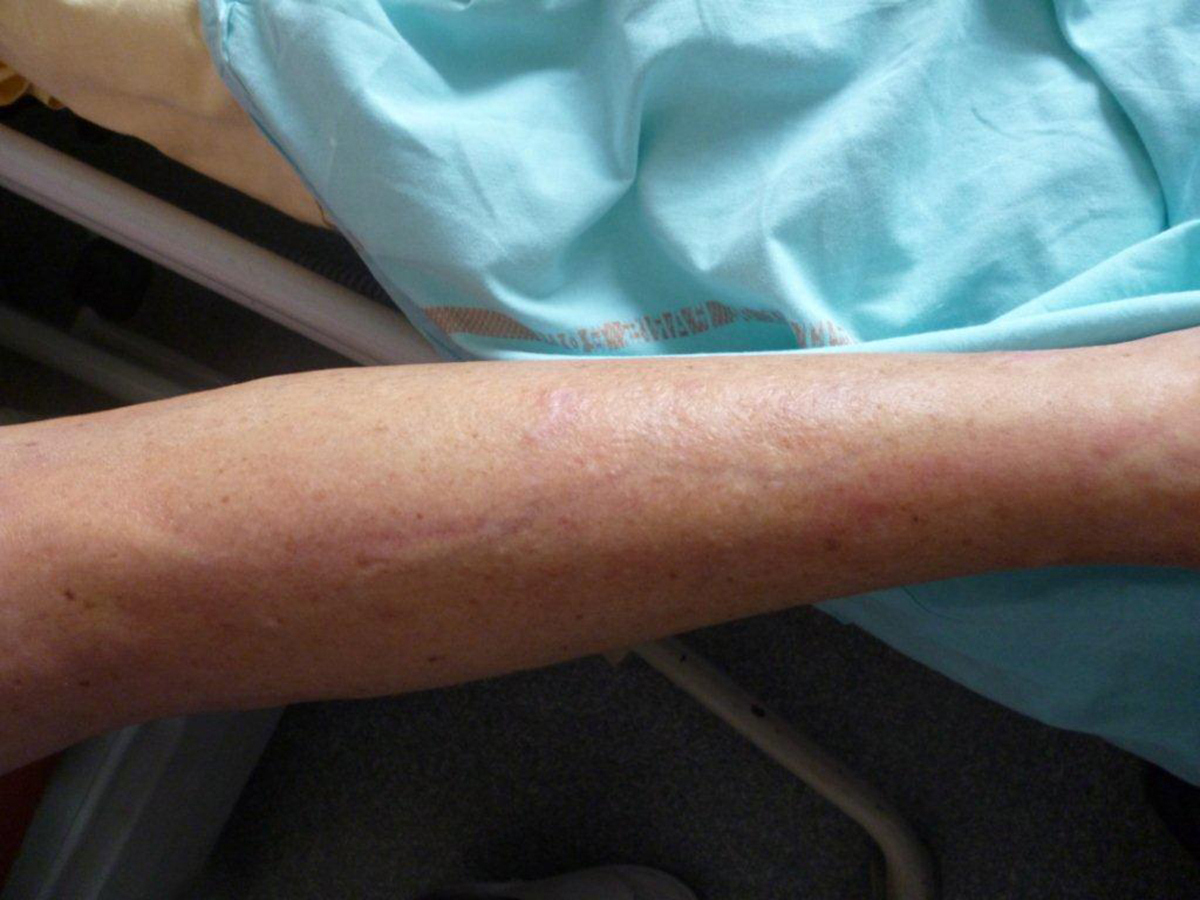 Il s'agit d'une fasciite à éosinophiles ou syndrome de Shulman. C'est une maladie sporadique caractérisée par une infiltration du fascia par des lymphocytes et des plasmocytes, avec présence d'éosinophiles. Elle se manifeste par des oedèmes des membres, sensibles et symétriques, pouvant évoluer vers une induration progressive non douloureuse. La peau est décrite en "peau d'orange" avec présence du "signe du canyon", défini par une dépression veineuse entre les tissus sous-cutanés indurés. Une hyperéosinophilie est présente dans 80 à 90 % des cas. Le diagnostic, orienté par l'IRM musculaire, est confirmé par l'histologie (biopsie musculaire), qui met en évidence un infiltrat inflammatoire lymphoplasmocytaire, avec un pourcentage variable d'éosinophiles, et un épaississement des fascias musculaires superficiels avec densification du collagène. Ce syndrome peut être associé à d'autres pathologies notamment les hémopathies (leucémies aiguës, lymphome de Hodgkin, aplasies médullaires, myélodysplasies, purpura thrombopénique immunologique, anémie hémolytique…). Le traitement est en premier lieu la corticothérapie (0,5 à 1 mg/kg/j de prednisone), puis en cas d'inefficacité les immunosuppresseurs et les immunomodulateurs comme le méthotrexate, l'azathioprine.