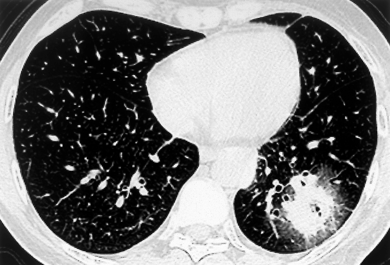 Il s'agit d'une aspergillose. Pour en savoir plus : - Jeny F, Nunes H. Sarcoïdose. Rev Prat 2016;66(2):e49-59. - Lortholary O, et al. Dossier "Mycoses viscérales". Rev Prat 2015;65(10):1317-42. - Patrat-Delon S, Revest M, Tattevin P. Prescription et surveillance des anti-infectieux. Rev Prat 2014;64(7):1015-25. - Parneix P, Rogues AM. Infections nosocomiales. Rev Prat 2013;63(5):721-7. -Borie R, Crestani B. Pneumopathie interstitielle diffuse. Rev Prat 2012;62(5): spécial web.