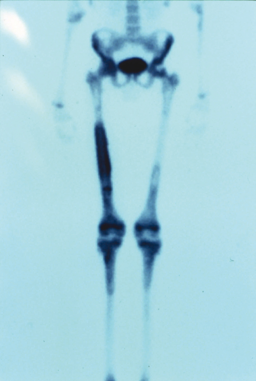 Quel est votre diagnostic ? Ostéomyélite Il s'agit d'une ostéomyélite. Périartérite noueuse Ostéoarthropathie hypertrophiante pneumique Algodystrophie Maladie d'Erdheim-Chester OK Valider mes réponses