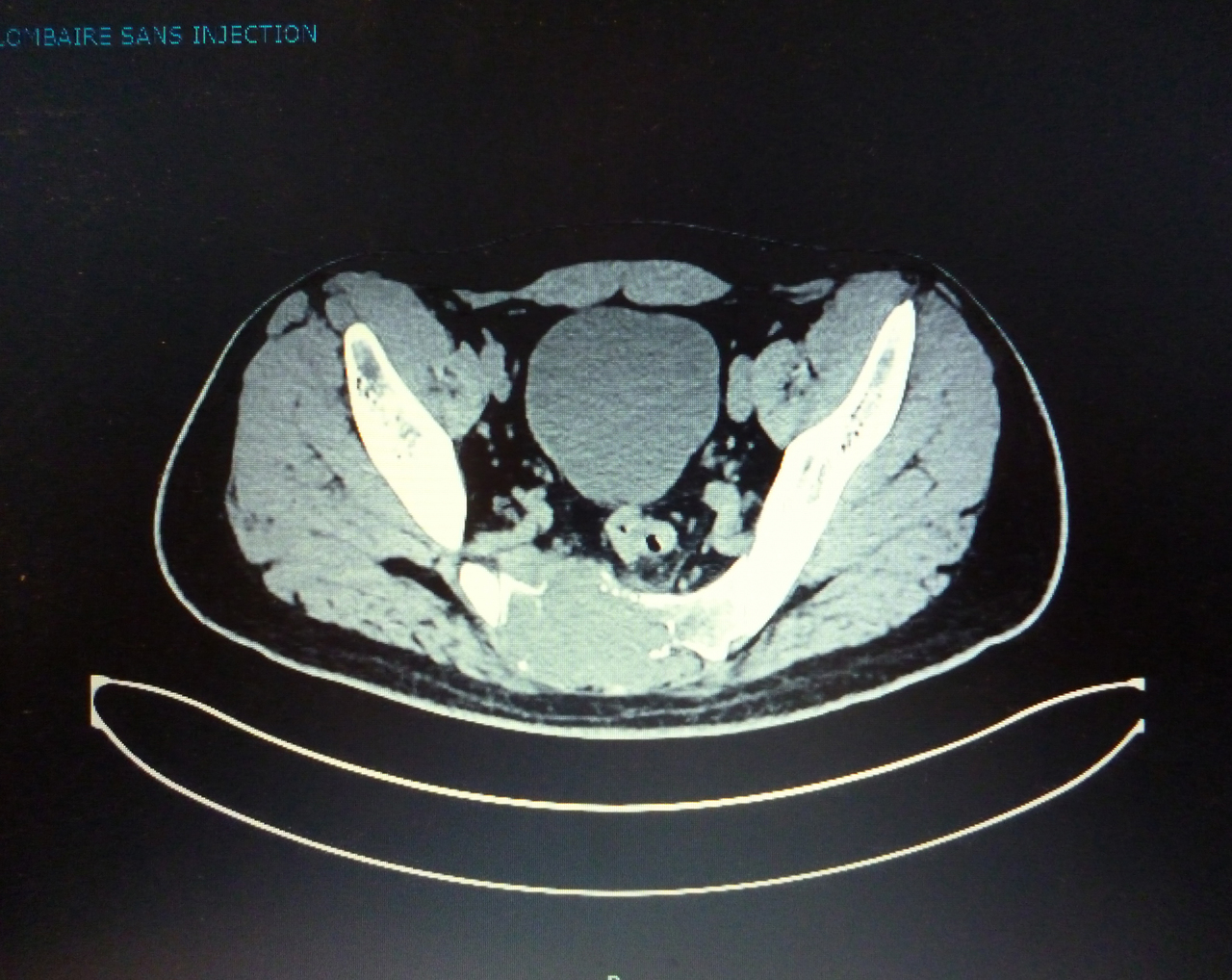 Il s'agit d'un chondrosarcome. Pour en savoir plus :- Levet S, Canel V, Skall Di, Aristizabal P, Levaillant JM, Haddad B, Toubou C. Tuméfaction pelvienne chez la femme. Rev Prat 2016;66(3):e111-8.- Boccara O, Léauté-Labrèze C. Hémangiomes et malformations vasculaires cutanées. Rev Prat 2017;67(4):e197-204.
