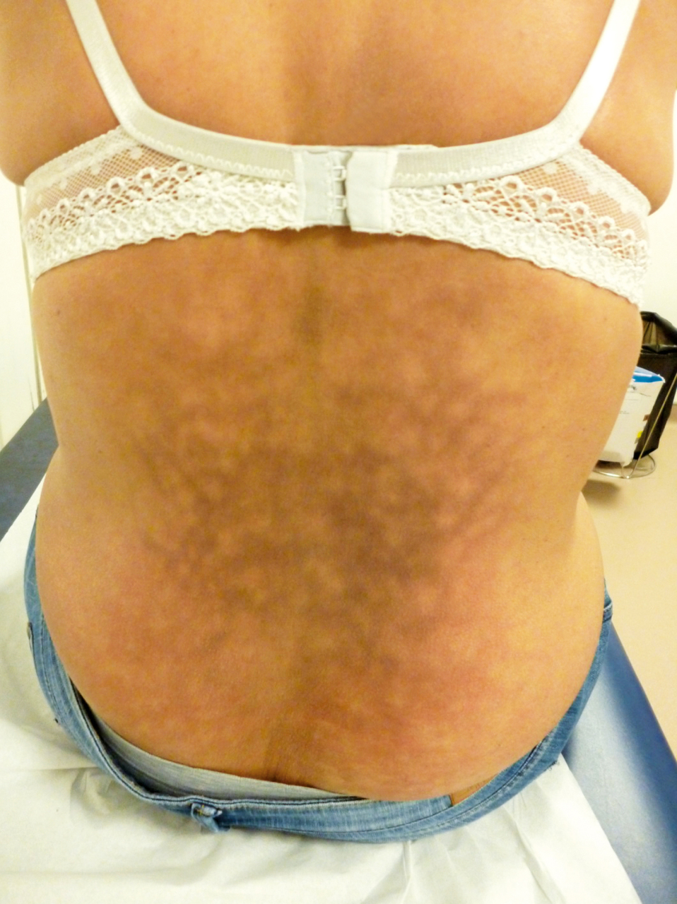 Il s'agit d'un syndrome des chaufferettes, appelé aussi dermite a calore ou erythema ab igne.