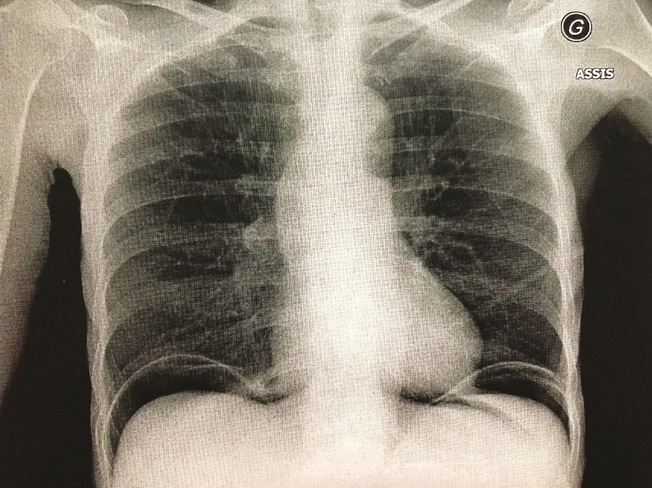 La bonne réponse est : Pneumopéritoine. Le cliché d'abdomen sans préparation, centré sur les coupoles et idéalement réalisé debout, permet de faire le diagnostic de pneumopéritoine, signant la perforation d'un organe creux (en l'absence de contexte postopératoire précoce). Il apparaît sous la forme d'une hyperclarté sous-diaphragmatique, bilatérale sur ce cliché.