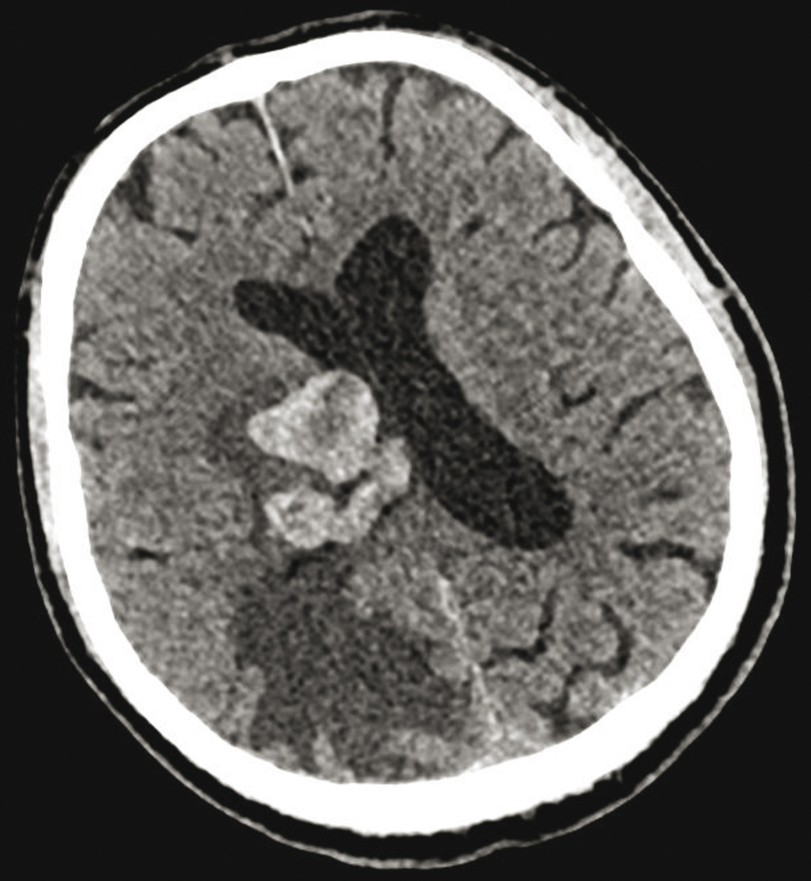 Quel est votre diagnostic ? Métastases cérébrales Il s'agit de métastases cérébrales.Pour en savoir plus :- Hoang-Xuan K, et al. Dossier. Métastases cérébrales : d'abord ne pas se décourager. Rev Prat 2014;64(5):667-88. Glioblastome Tuberculome Toxoplasmose cérébrale Lymphome OK Valider mes réponses