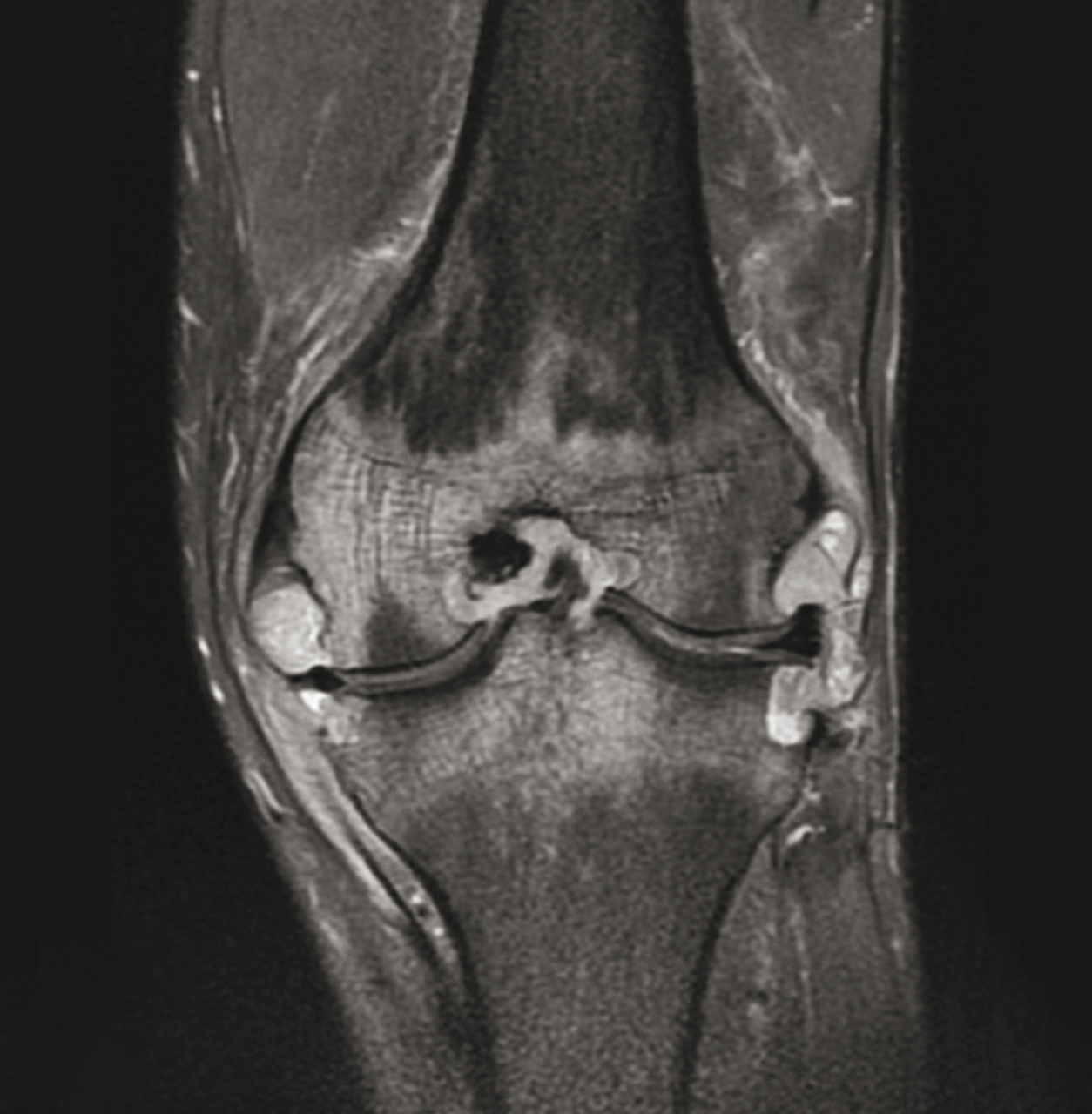 La bonne réponse est : Tuberculose du genou. Références : Chales G. Conduite à tenir devant un genou douloureux. Rev Prat 2009;59(9):1224-5. - Albert JD, Lambotte JC, Brunet JF, Chales G. Quelle imagerie devant un genou douloureux. Rev Prat 2009;59(9):1233-42.
