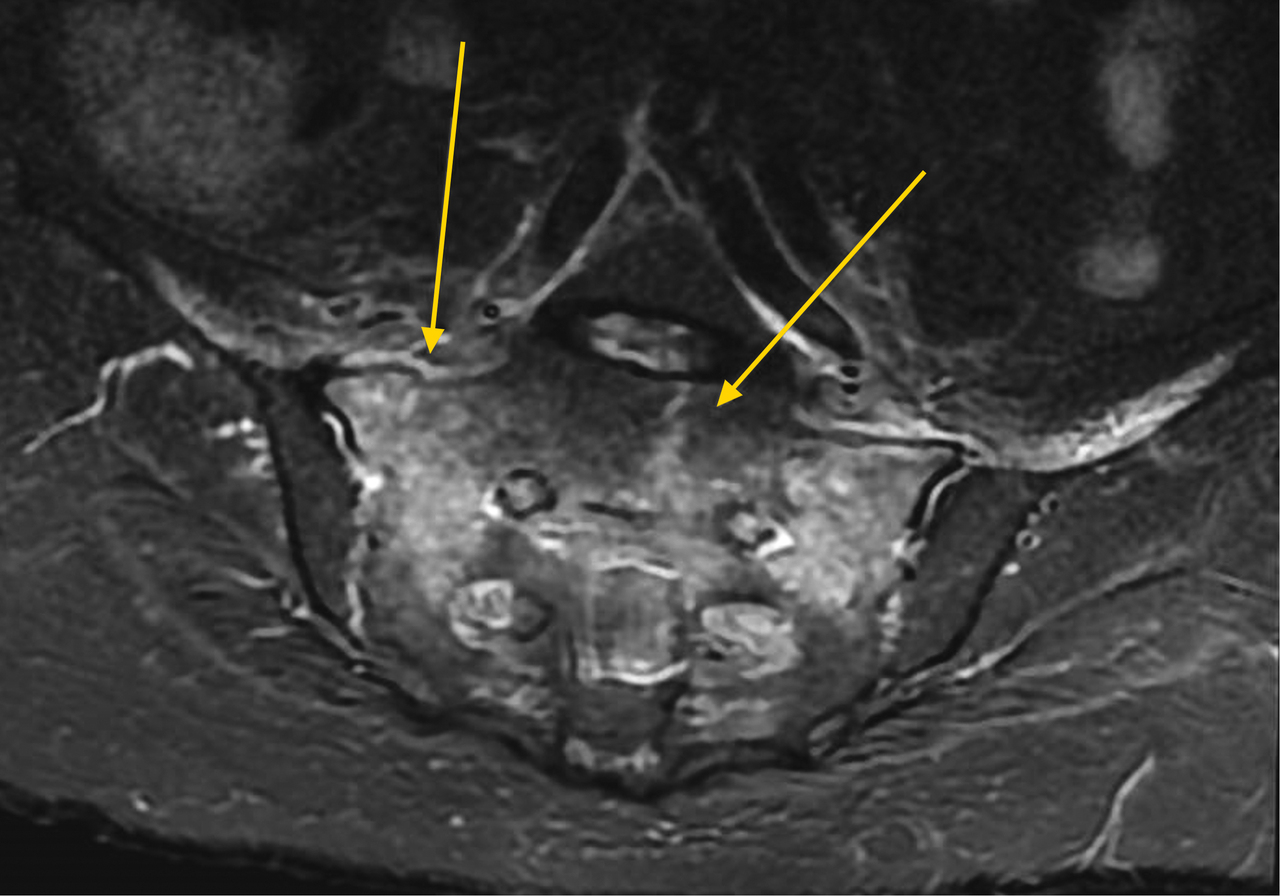 Les fractures du sacrum par insuffisance osseuse (ostéoporose) sont une pathologie fréquente du sujet âgé mais sous-estimée. Le diagnostic est rarement suspecté et une errance de plusieurs mois est fréquente. La fracture du sacrum est confirmée par une imagerie par résonance magnétique ou une scintigraphie mettant en évidence la solution de continuité d’une ou des 2 ailes sacrées pouvant être reliées entre-elles et réalisant ce que l’on appelle communément la fracture en « H » du sacrum. La symptomatologie est aspécifique mais la présence d’une douleur lombaire basse chez un patient ostéopénique doit faire évoquer le diagnostic.