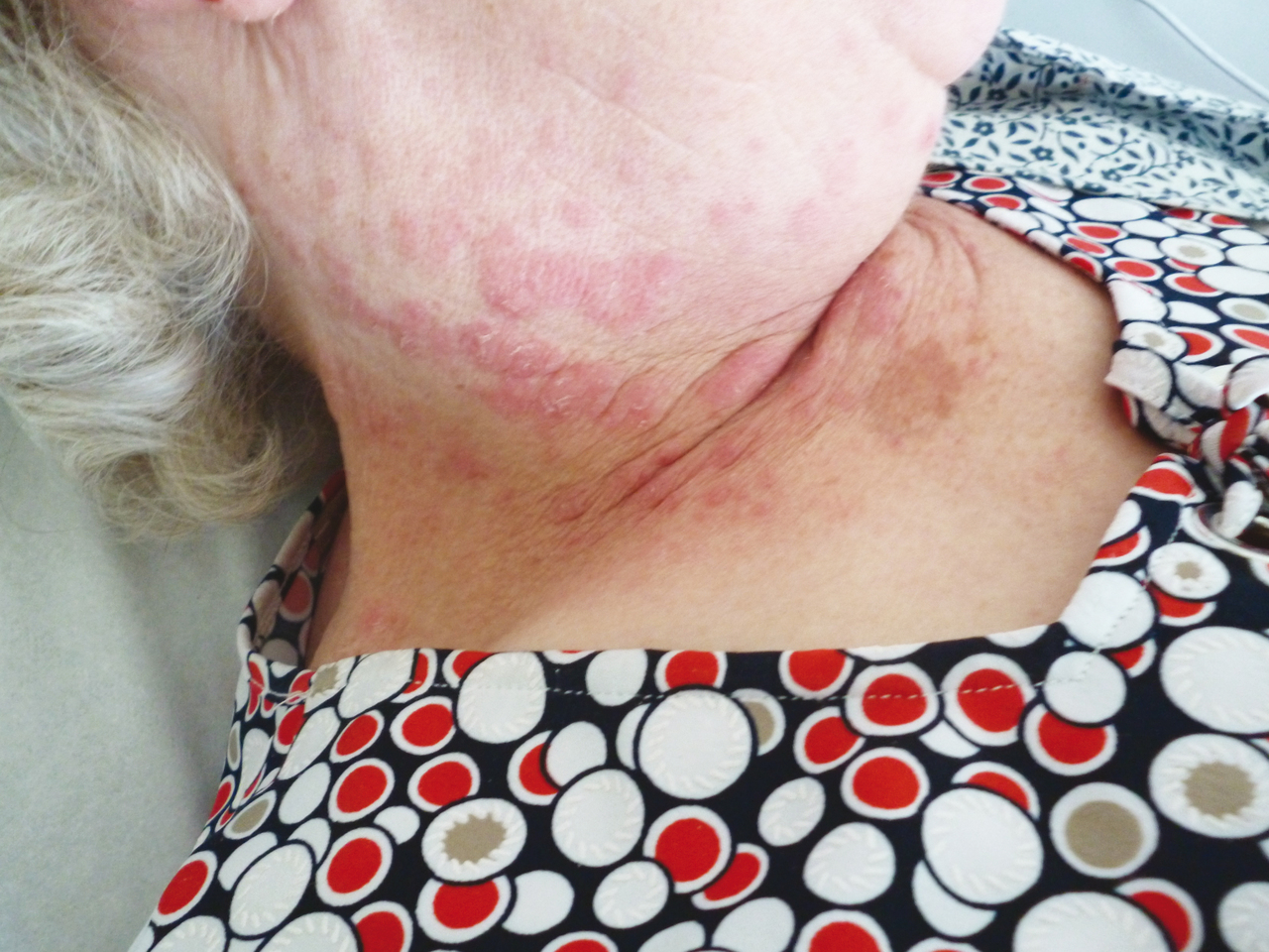 Femme de 68 ans suivie pour un lupus ayant arrêté son traitement par hydoxychloroquine.