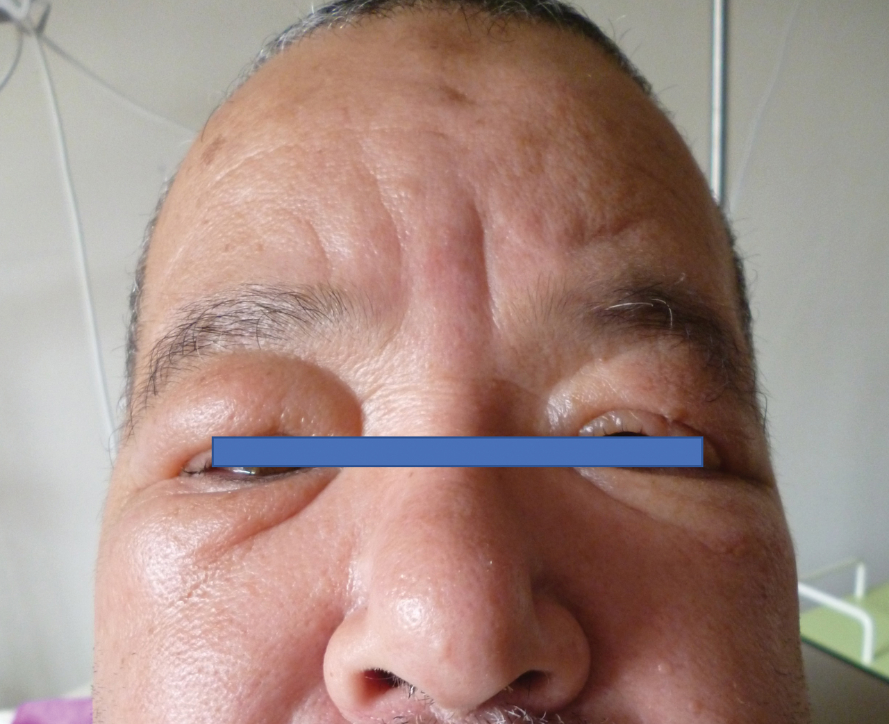 Homme de 58 ans consultant pour un oedème permanent de la face associé à une éruption intermittente papuleuse des membres.