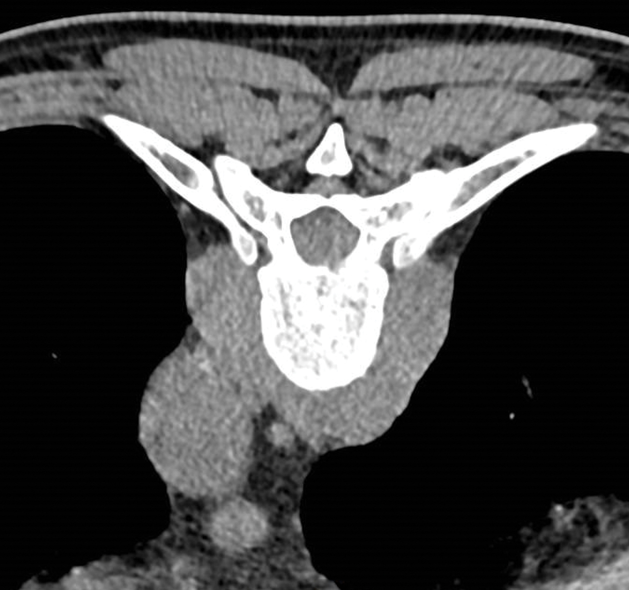 Homme de 74 ans, suivi pour une leucémie lymphoïde chronique, se plaignant de dorsalgies. Le scanner montre une masse paravertébrale de T9.