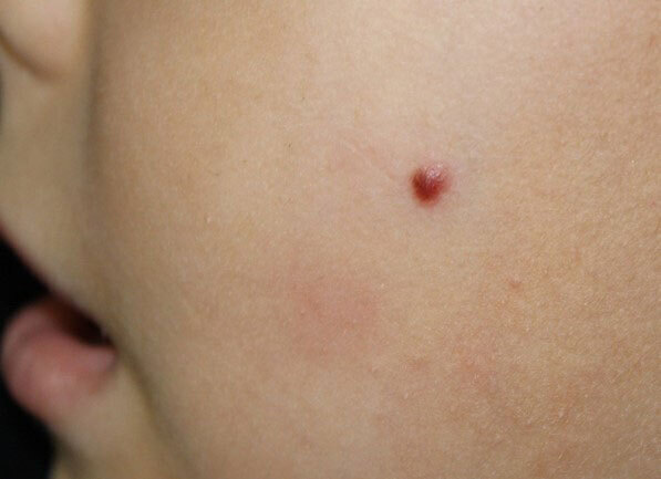 Un enfant de 6 ans a une lésion apparue il y a quelques semaines sur une joue.