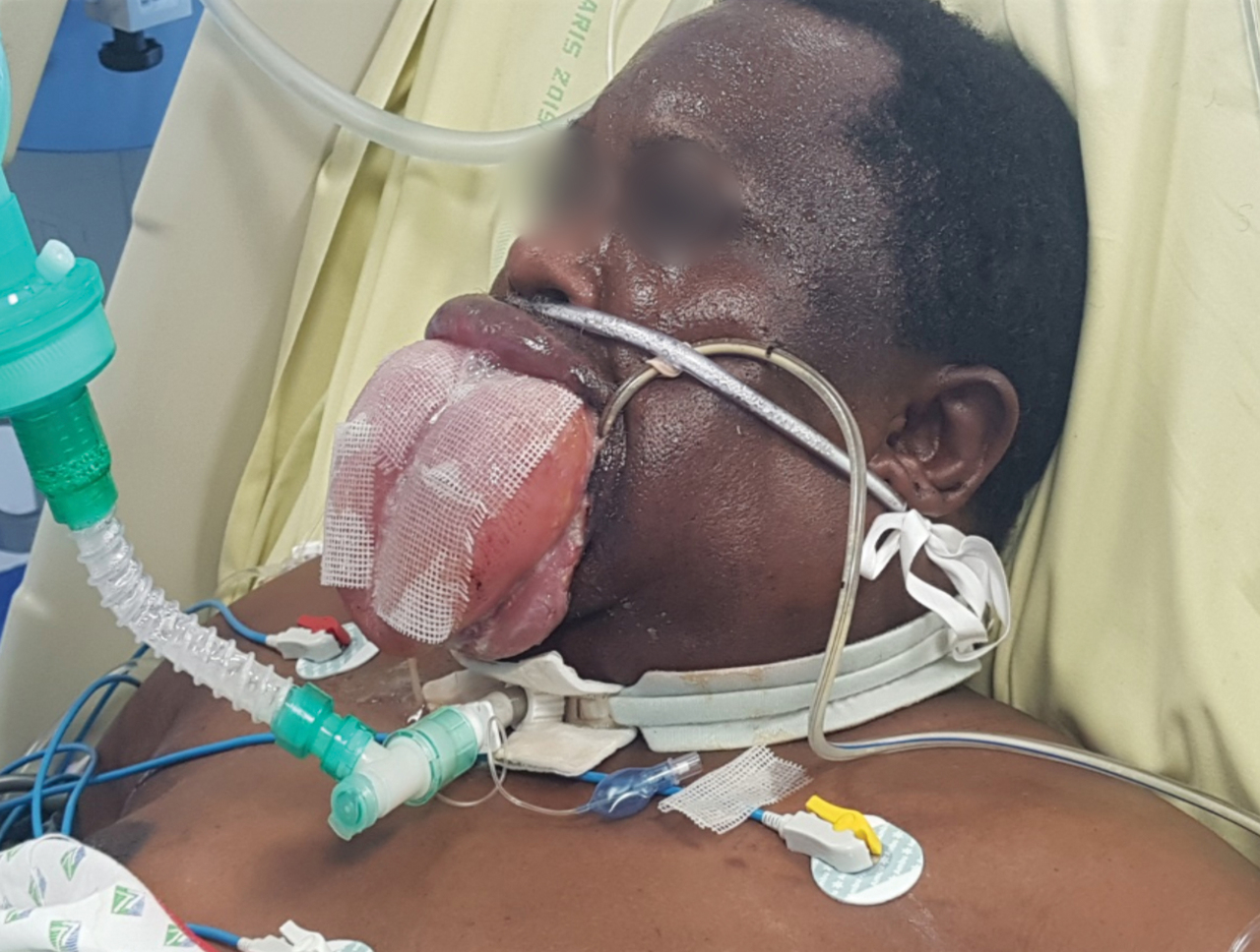 Un homme de 65 ans est hospitalisé en réanimation pour une infection par le SARS-CoV-2. Quel est votre diagnostic ? Angiœdème induit par les IEC Macroglossie positionnelle (décubitus ventral prolongé) Amylose AL Syndrome de Melkersson-Rosenthal Syndrome cave supérieur OK Valider mes réponses