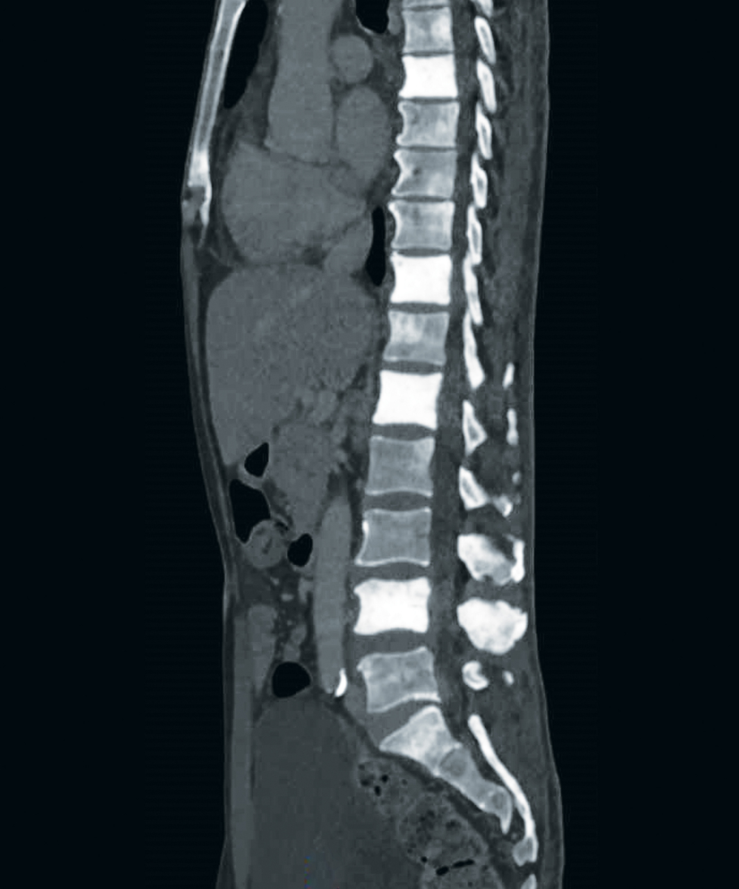 La prostate est augmentée de volume et nodulaire. Le PSA est à 4138 µg /L. Les métastases osseuses de cancer de prostate peuvent être condensantes, comme celles du sein. Le patient a reçu un traitement par un analogue de la LH-RH et un inhibiteur de la synthèse des androgènes.