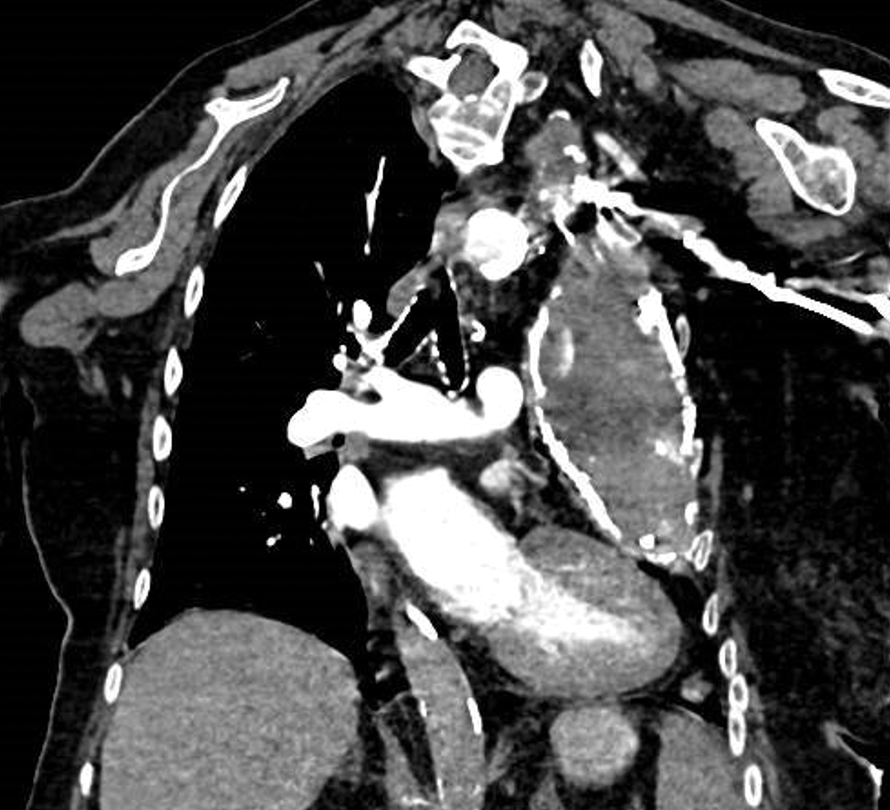 Une femme de 97 ans est hospitalisée pour dyspnée. Elle a un antécédent ancien de pleurésie qui a été drainée.