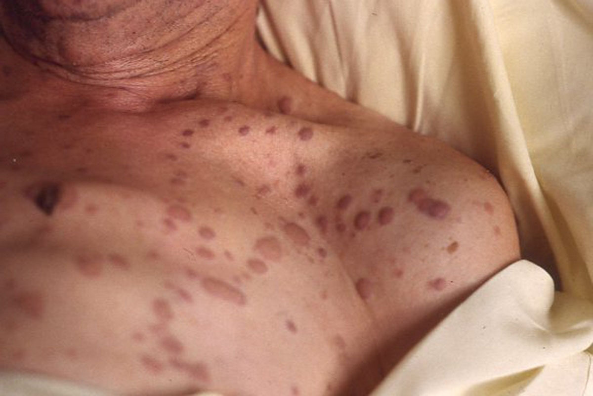 Il s’agit de leucémides. Cela correspond à l’atteinte cutanée spécifique des leucémies aigues myéloïdes. Lésions tumorales cutanées arrondies, dures et parfois violacées, elles peuvent apparaître rapidement dans les formes hyperleucocytaires.