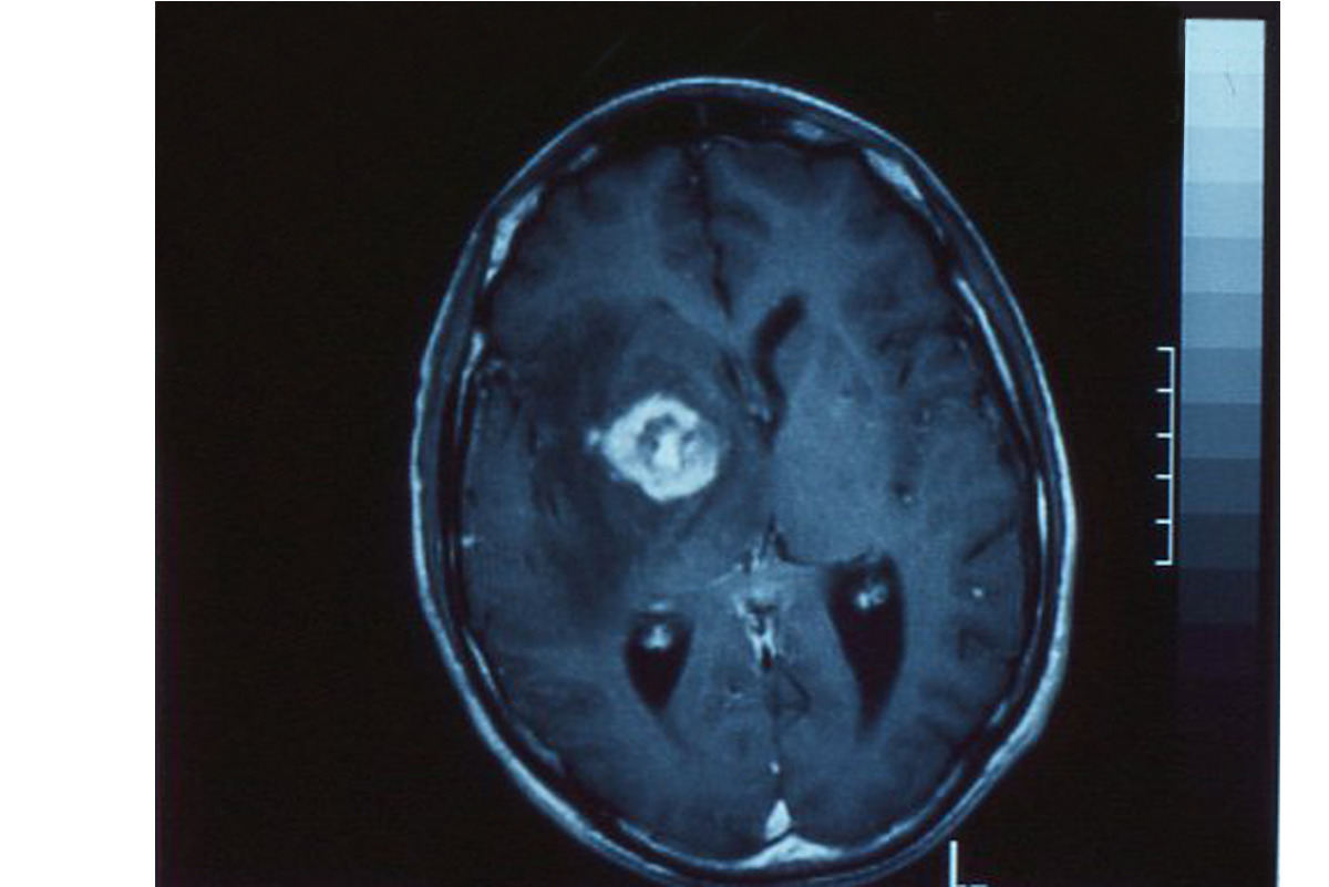 Il s’agit d’une toxoplasmose cérébrale chez un patient immunodéprimé (SIDA).