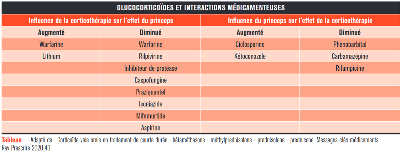 Quelles sont les principales interactions médicamenteuses des corticoïdes per os ?