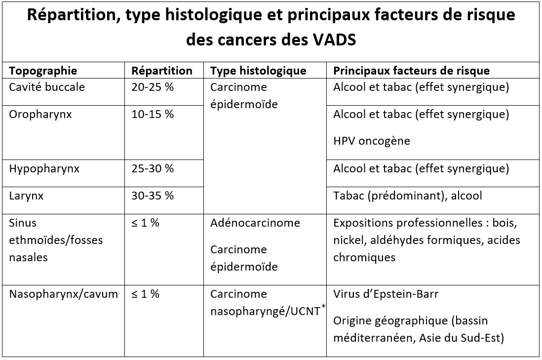 D’après : Le Clerc N. Épidémiologie et facteurs de risque des cancers des voies aérodigestives supérieures. Rev Prat 2022;72(10);1076-7.