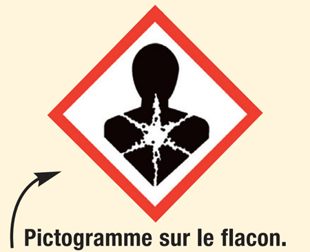 Une patiente consulte, inquiète, puisque depuis le début de sa grossesse, elle manipule des produits chimiques dans le cadre de son travail. Elle vous apporte un flacon comportant le pictogramme suivant :