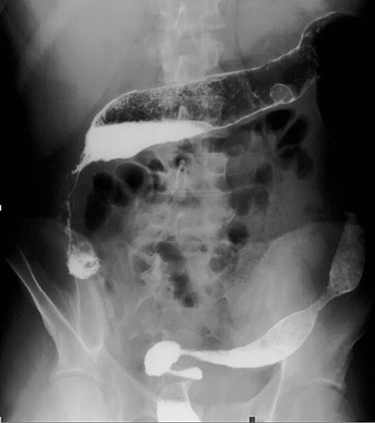 Sténose compliquant l'évolution d'une maladie de Crohn et correspondant à un adénocarcinome colique après analyse histologique de la pièce opératoire.