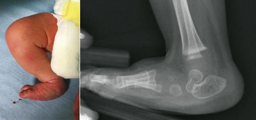 Le pied convexe est une luxation du médiotarse au niveau de l’interligne de Chopart, parfois difficile à distinguer d’une malposition à la naissance. Cliniquement, l’arrière-pied est en équin, l’avant-pied en flexion dorsale. La plante du pied a un aspect convexe, dit « en tampon de buvard ». La tête du talus fait saillie sur le bord interne du pied. À la radiographie, la verticalisation du talus ne se corrige pas lors de la mise en flexion dorsale. Une luxation dorsale dans l’interligne de Chopart est observée.