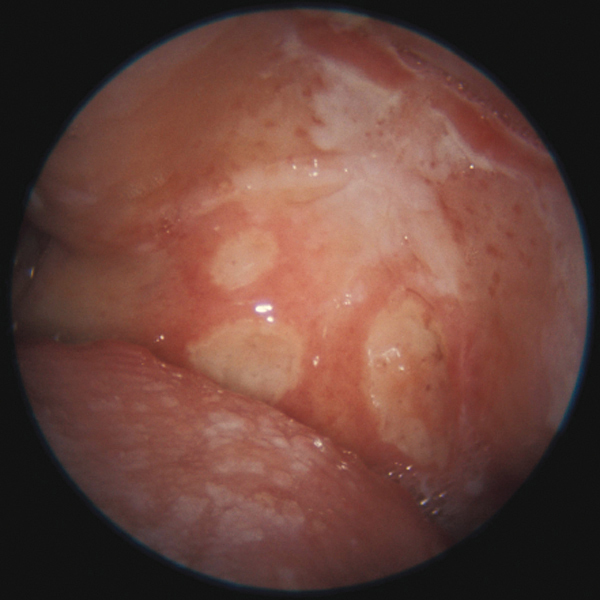 Aphtes buccaux (vulgaires) au cours d'une maladie de Crohn.