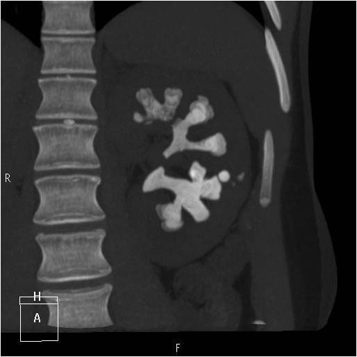 Raphaëlle Renard-Penna, La Revue du Praticien Uroscanner sans injection. Calcul coralliforme du rein gauche.