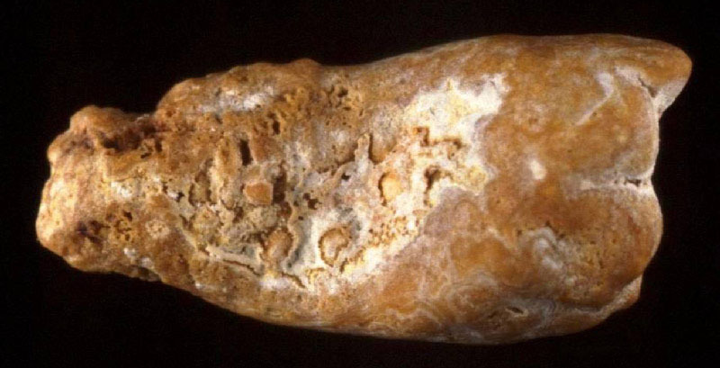 Calcul d’acides uriques anhydre et dihydraté de type IIIb chez un homme de 55 ans ayant une obésité morbide. Dimensions : 8 x 3,5 mm.