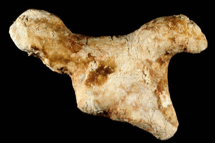 Calcul phosphatique mixte composé de carbapatite, de phosphate amorphe de calcium carbonaté et de struvite, provoqué par une infection à germes uréasiques chez un enfant de 4 ans. Dimensions : 30 x 24 mm.