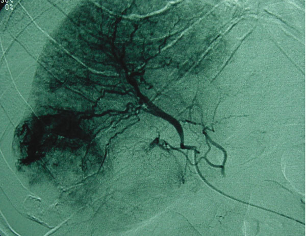 La Revue du Praticien - Jacques Belghiti Tumeur hypervasculaire sous-capsulaire associée à un hémopéritoine. L'artériographie montre la lésion et objective l'hémorragie. Elle permet, de plus, de faire un premier traitement (embolisation artérielle au mieux sélective).