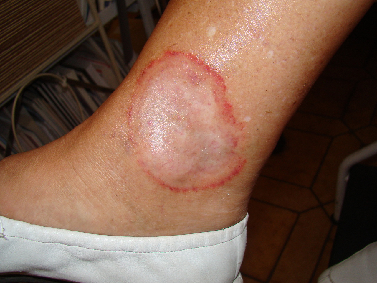 Une lésion inflammatoire de dermatophytie peut être confondue avec : un eczéma, un psoriasis, un granulome annulaire ou un érythrasma, lésion en général non prurigineuse, de teinte homogène, due à des corynébactéries. Les dermocorticoïdes non seulement ne sont pas efficaces, mais leur application peut aggraver les lésions : les bords deviennent rouge vif, des papules ou des pustules folliculaires sont parfois associées. On peut également observer une atrophie cutanée, d’autant plus marquée que la durée d’administration des dermocorticoïdes a été longue.