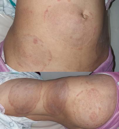 Anciennement appelée « herpès circiné », c’est une infection cutanéo-phanérienne superficielle, fréquente, le plus souvent due à des dermatophytes anthropophiles des pieds ou zoophiles provenant d’un chat, chien (M. canis). Les lésions forment des placards arrondis ou polycycliques (coalescents). L’atteinte est unique ou multiple, avec une bordure très évocatrice érythémato-vésiculo-squameuse, associée à un prurit parfois intense, d’évolution centrifuge avec guérison centrale.