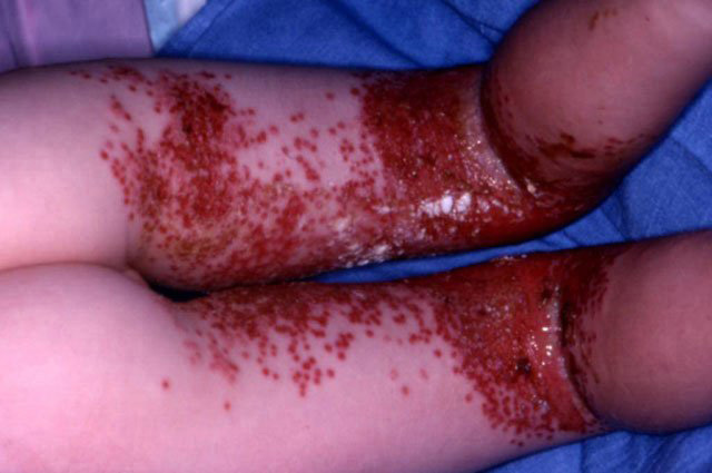 Il s’agit d’une greffe du virus herpétique sur une dermatite atopique.