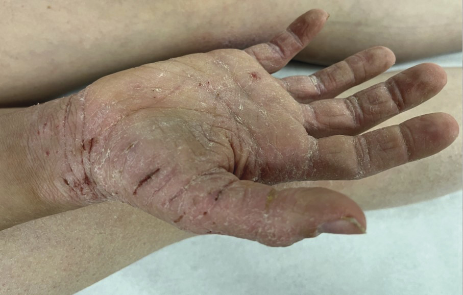 L'atteinte chronique et le grattage de la dermatite sont souvent responsables d'une lichénification (épaississement) de la peau