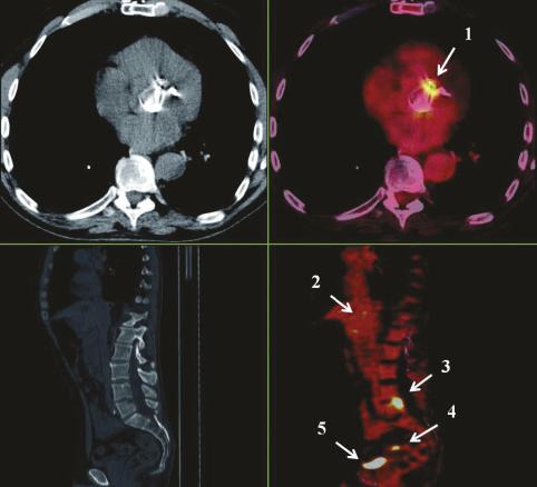 Imagerie TEP (à droite) couplée à un scanner thoraco- abdomino-pelvien (à gauche). Extrait de : Endocardite infectieuse