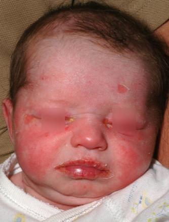 Épidermolyse staphylococcique, atteinte du visage et décollement cutané