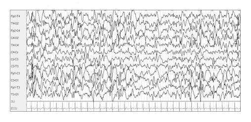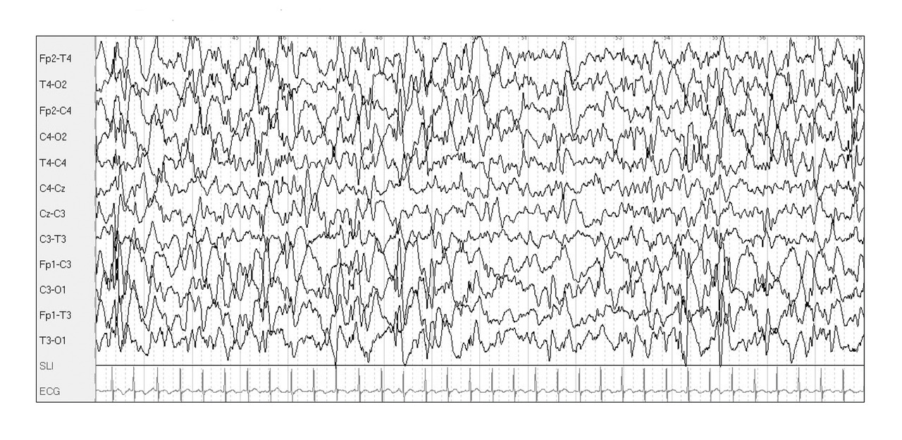 L’EEG montre une hypsarythmie, caractérisée par une disparition du rythme de fond et une désorganisation complète de l’activité électrique cérébrale, avec des ondes lentes et pointes multifocales diffuses et asynchrones de grande amplitude.