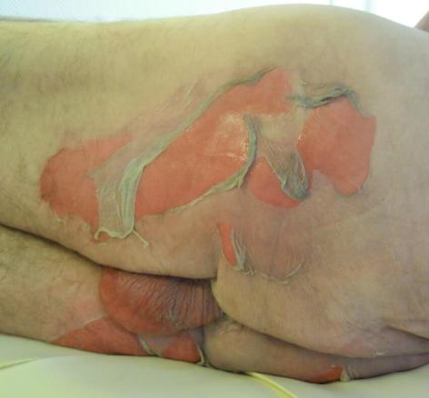 Macules érythémateuses ou purpuriques arrondies, parfois bulle centrale, cicatrisation avec pigmentation post-inflammatoire, récidive toujours aux mêmes endroits