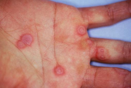 © Pascal del Giudice L’herpès est la première cause d’érythème polymorphe récurrent.Photo du Dr Pascal del Giudice.