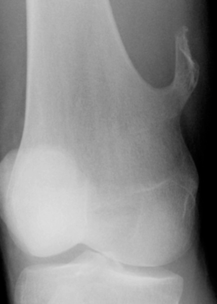 Exostose : saillie osseuse en continuité avec la corticale