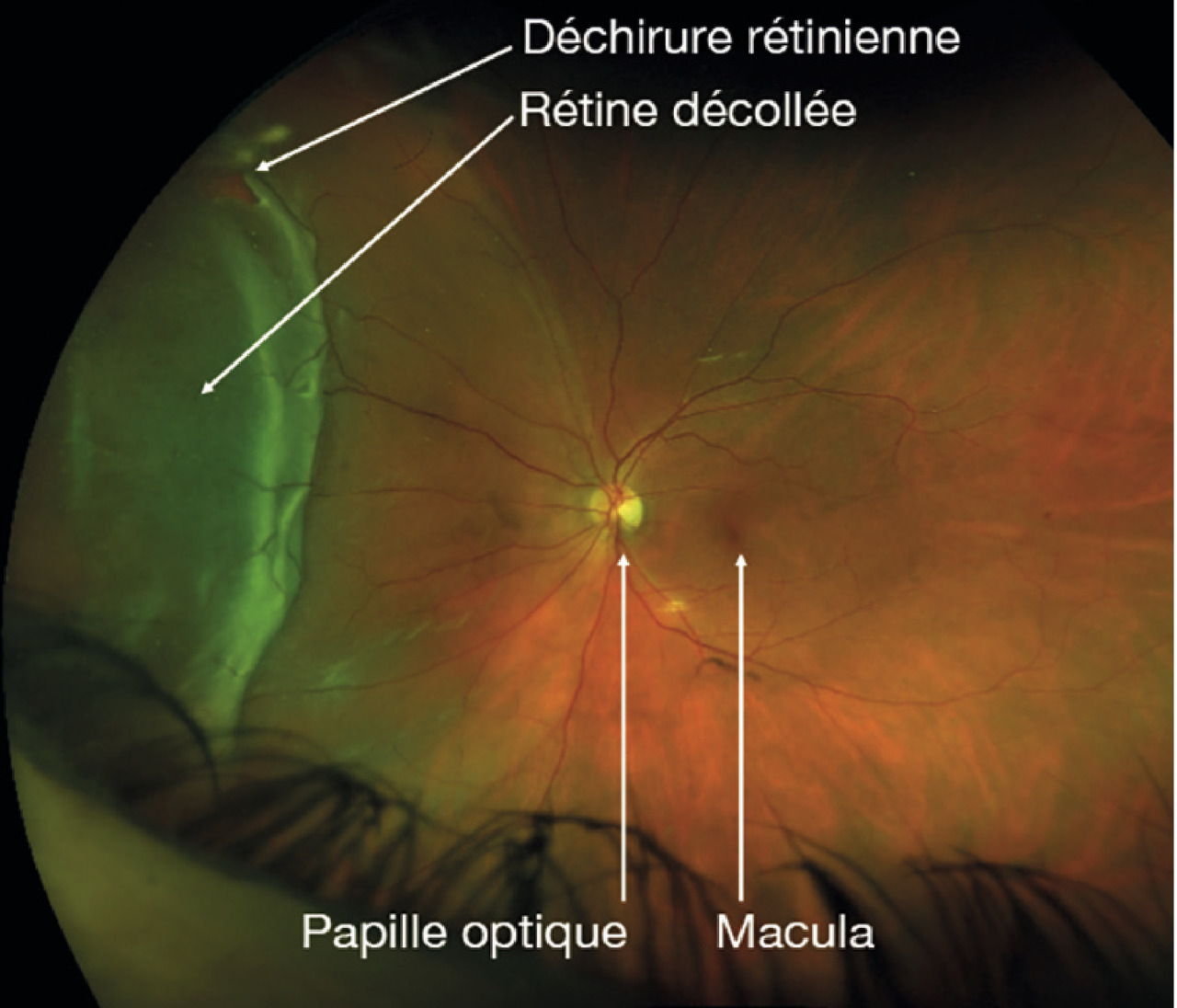Fig. 2 – Rétinographie d’un décollement de rétine gauche.
