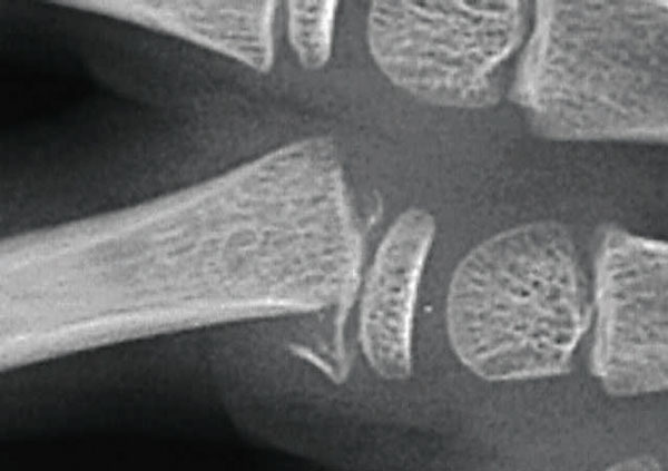© Frank Fitoussi, La Revue du Praticien Fracture juxta-épiphysaire de la base de la première phalange. Extrait de : Particularités des traumatismes de la main de l'enfant